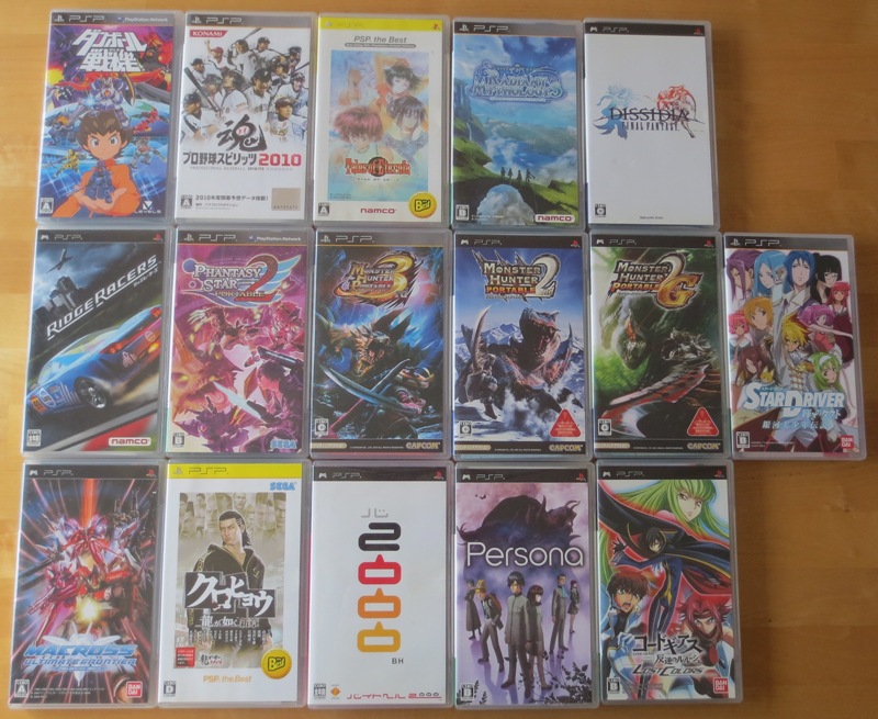 Je suis tombé sur un lot PSP à pas cher, du coup, je me retrouve avec les 3 Monster Hunter. Persona et les Tales of iront très bien dans leurs collections respectives. Par contre, je me retrouve avec un Dissidia en double puisque je l'avais déjà acheté lors d'une précédente commande (le problème des lots...)