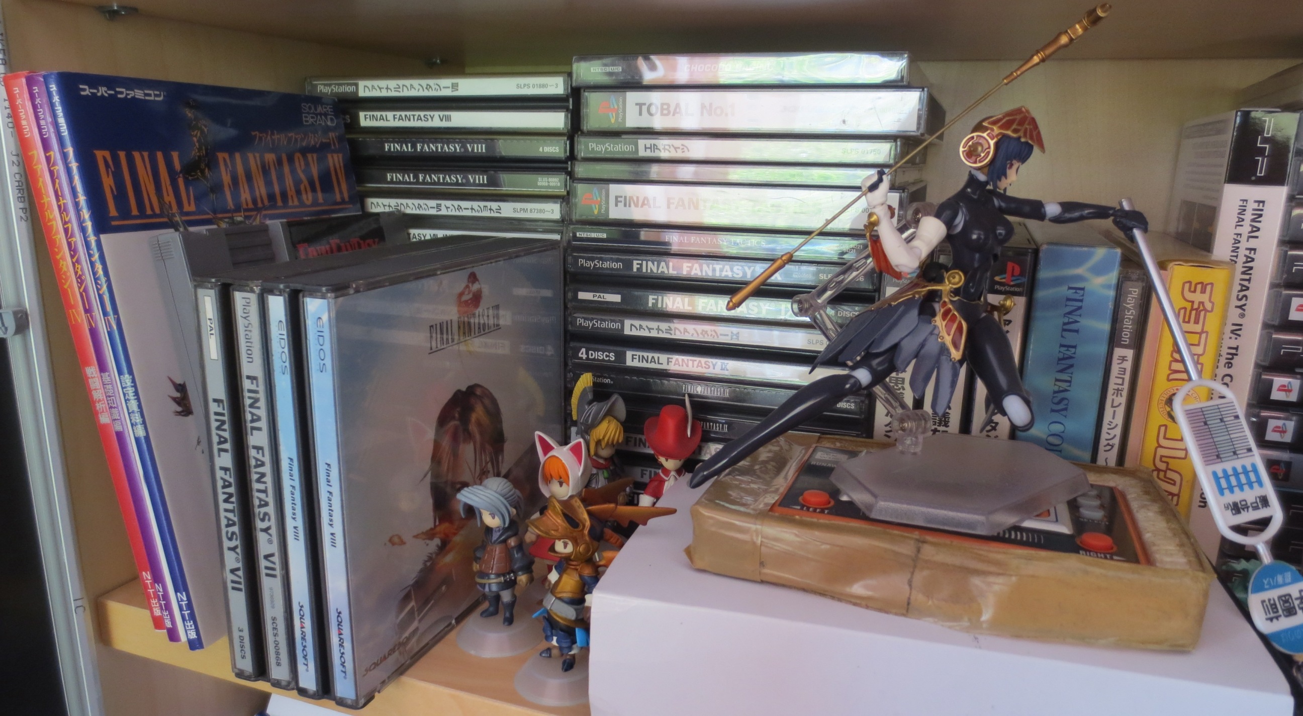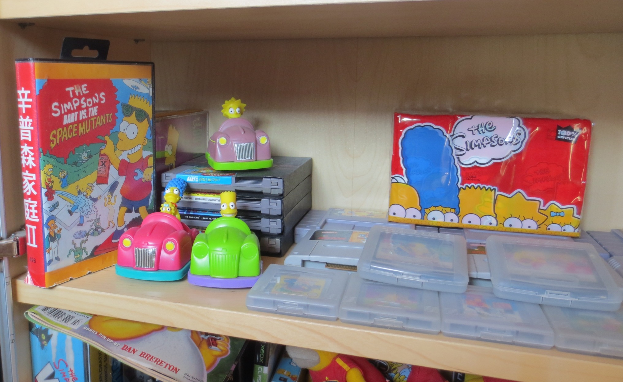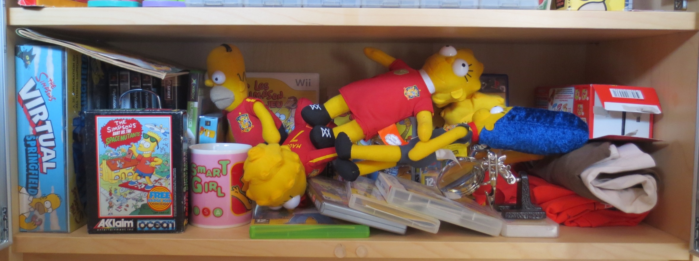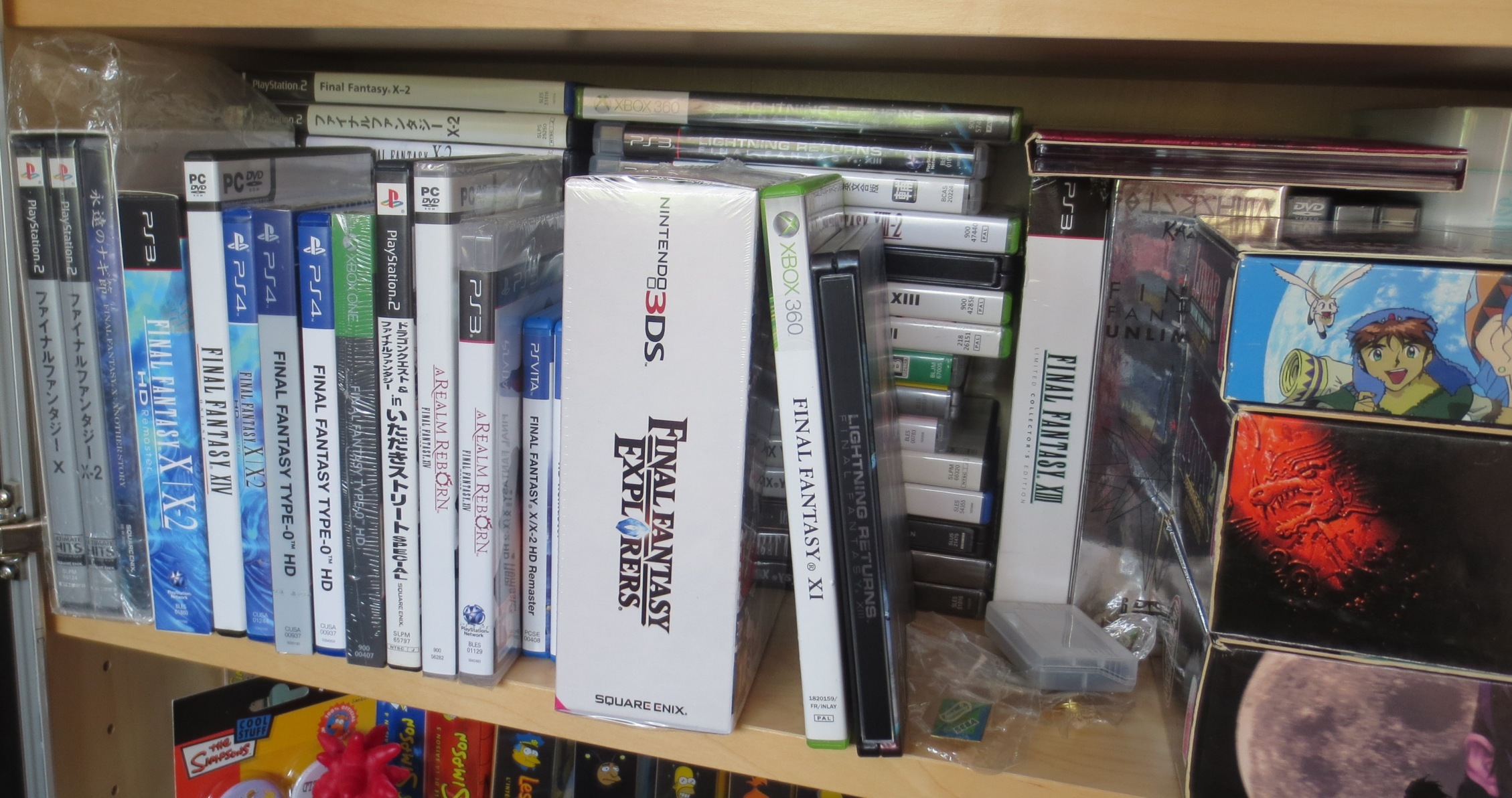 Au niveau des collections particulières, Mario a pas mal évolué depuis l'an dernier. Pas autant qu'entre 2014 et 2015, certes, mais pas mal de jeux en boîte (et oui, je rachète en boîte des jeux que j'avais en loose... Bonjour la perte de temps...). En ce qui concerne les FF, SMT, Tales of et DQ, ça se remplit plus gentiment. Et que dire des Simpsons, peu de nouveaux jeux, mais pas mal de nouveaux goodies trouvés en vide-grenier.