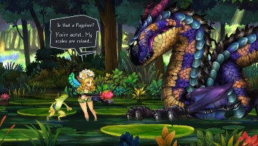 Ah oui, et la référence à Cooking/Gardening Mama : dans les donjons, on ramasse des graines et de la nourriture. Les graines permettent de faire pousser des plantes et en mélangeant plantes et nourriture et en les donnant au cochon-cuistot qu'on trouve dans certaines zones de repos dans les donjons, celui-ci nous cuisine des plats qui nous permettent de gagner de l'XP et et augmenter le nombre de points de vie.